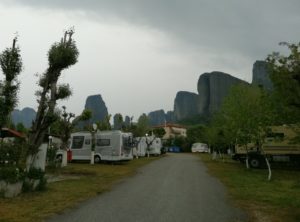 Dokaj hladno noč prespimo v TOP kampu VRACHLOS KASTRAKI, z direktnim pogledom na Meteoro.