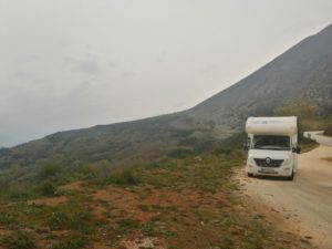 Da je cesta do Ohrida ( tisto kolker ni avtoceste) za skoraj 7m dolg kamper čista katastrofa – o tem ne bom pisala, moj mož je specialist za vožjo in še tam, ko jaz trzam na sovoznikovem sedežu on hladnokrvno zvozi.