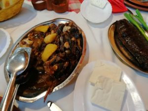 Ja tudi specialiteto TELEČJI REP in svinjski vrat ter šopsko solato imamo na meniju že za zgodnje kosilo ( zame bolj zajtrk, nevljudno bi bilo ne jest!!!) Jao mene.. še dobro da nismo VEGI . Potem pa z polnimi želodci via Ohrid .