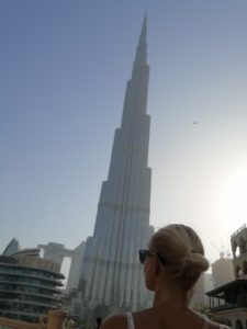 Drvimo mimo Burj el Arab – hotel obliki jadra…The Palm Dubaj .. umetni otok z znanim hotelom Atlantis the Palm na koncu te stvaritve…nebotičniki v nebo in stavbe nenavadnih oblik pričajo o nekakšnem tekmovanju arhitektov . Kdo bo drznejši, kdo si več upa…in med vse temi umetninami , prestižem in bliščem se visoko v nebo dviga še trenutna najvišja zgradba na svetu Burj Khalifa.